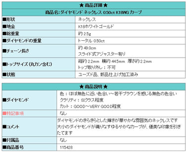Product name: Diamond necklace 0.50ct K18WG curve