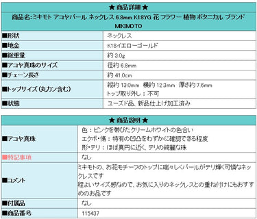 Product name: MIKIMOTO Akoya pearl necklace 6.8mm K18YG flower plant botanical brand MIKIMOTO