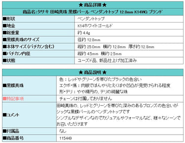 Product name: Tasaki Tasaki Pearl Black Pearl Pendant Top 12.8mm K14WG Brand