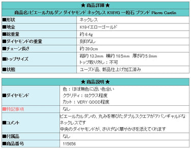 Product name: Pierre Cardin Diamond Necklace K18YG Single Stone Brand Pierre Cardin
