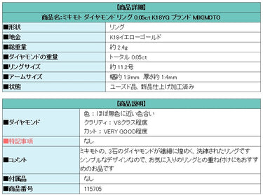 Product name: MIKIMOTO Diamond Ring 0.05ct K18YG Brand MIKIMOTO