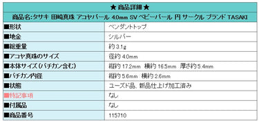 Product name: TASAKI Akoya Pearl 4.0mm SV Baby Pearl Circle Brand TASAKI