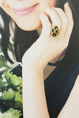 Onyx Ring Diamond K18YG Matte Texture Leaves Plants Botanical Art Nouveau | 18K Diamond Luxurious Gorgeous Cute Stylish [Used] [SH115757]