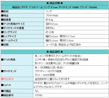 Product name: TASAKI Akoya pearl ring 9.1mm diamond Pt900 Brand: TASAKI