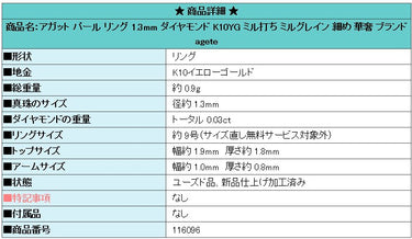 Product name: agete pearl ring 1.3mm diamond K10YG milled millgrain thin delicate brand agete