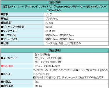 Product name: Tiffany Diamond Solitaire Ring 0.26ct Pt950 Solitaire Single Stone 6 Prongs Brand: TIFFANY&Co.