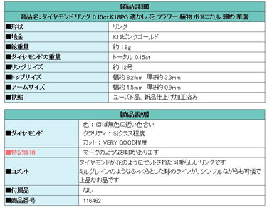 Product name: Diamond ring 0.15ct K18PG openwork flower plant botanical thin delicate
