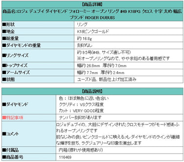 Product name: Roger Dubuis Diamond Follow Me Open Ring #49 K18PG Cross Thick Wide Brand ROGER DUBUIS