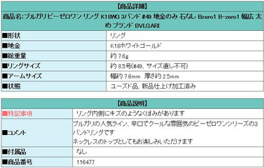 Product name: BVLGARI B-zero1 Ring K18WG 3 Band #49 Base metal only No stones Bzero1 B-zero1 Wide Thick Brand BVLGARI