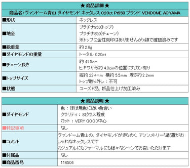 Product name: Vendome Aoyama Diamond Necklace 0.20ct Pt950 Brand: VENDOME AOYAMA