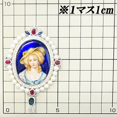 Product name: Enamel brooch, Akoya pearl, ruby, tourmaline, sapphire, diamond, K18WG, women, noblewoman, enamel, cloisonne, milgrain, milgrain