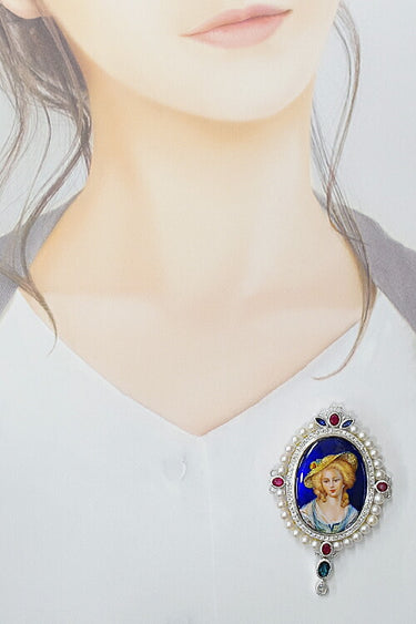 This luxurious brooch features a beautiful woman and is like a work of art.