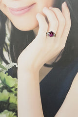 This gorgeous ring is dazzling with the enchanting color of pyrope spessartine garnet.