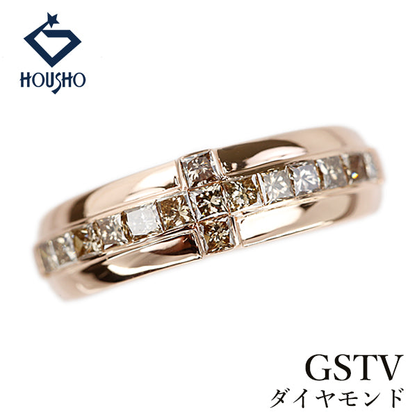 ジーエスティービー ダイヤモンド リング K18ピンクゴールド GSTV クロス 十字 変形カット ファンシーカット プリンセスカット メンズ ユニセックス【中古】【906028】