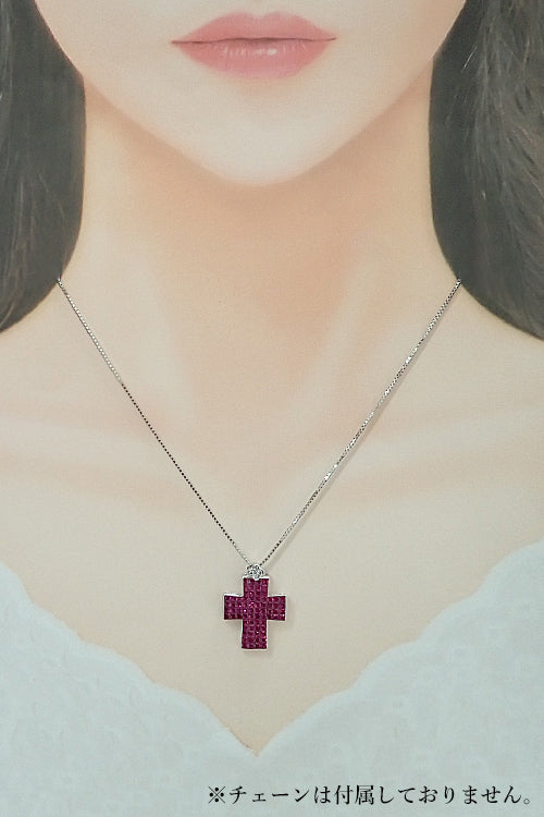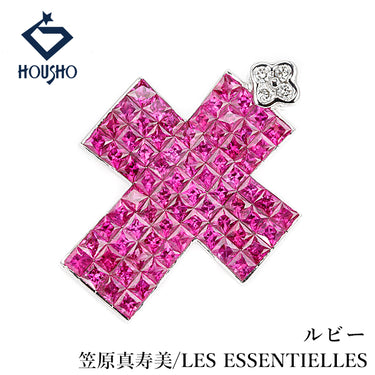 商品名 笠原真寿美/レ・エッセンシャル ルビー ペンダントトップ ダイヤモンド K18ホワイトゴールド KASAHARA MASUMI/LES ESSENTIELLES 作家 デザイナー クロス 十字架 ミステリーセッティング