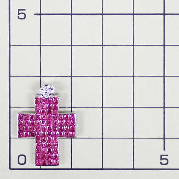 笠原真寿美/レ・エッセンシャル ルビー ペンダントトップ ダイヤモンド K18ホワイトゴールド KASAHARA MASUMI/LES ESSENTIELLES 作家 デザイナー クロス 十字架 ミステリーセッティング【中古】【905039】