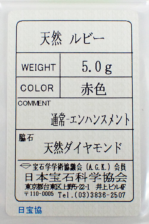 付属品 日本宝石科学協会ソーティング