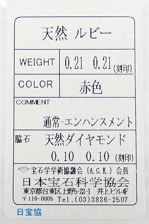 ルビーの重量 0.21ct 0.21ct
