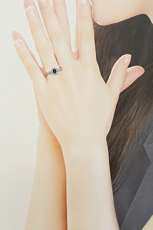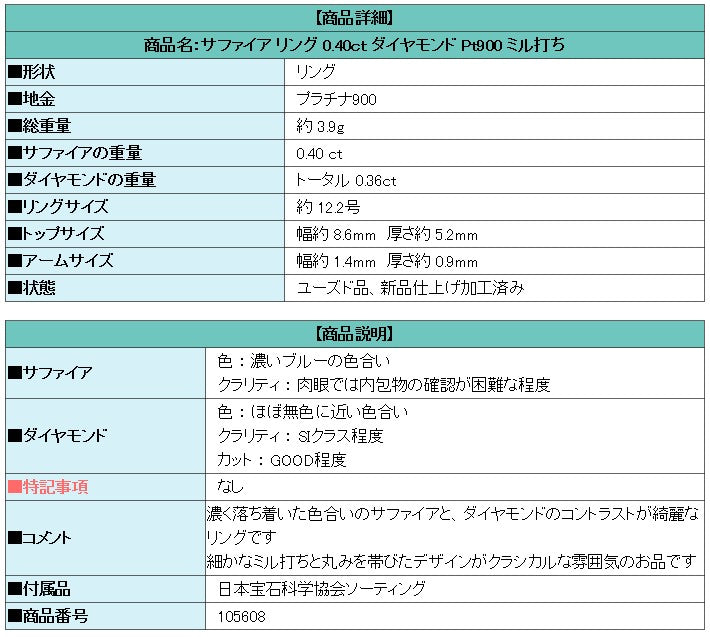 Sapphire ring 0.40ct diamond Pt900 milgrain | Blue sapphire, pink diamond, platinum, daily use, cute, stylish [Used] [SH105608]