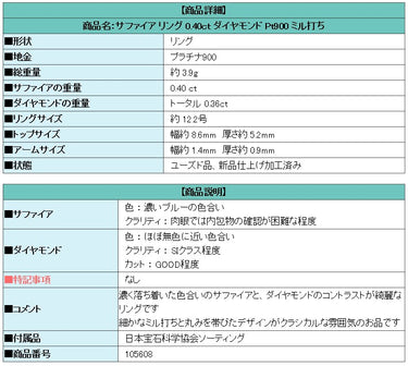 気になることがあったので質問したのですが、すぐ返信があり購入前から安心感がありました。配送も早く、説明通り、鑑定書も付いていて安心しました。今後も入荷をチェックして気にいったものがあれば購入したいと思いました。