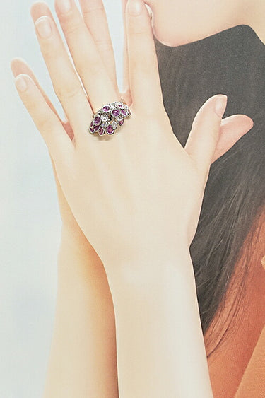 This unique ring from Adler is set with plenty of pink sapphires and diamonds, and features a dangling top that makes an impression.