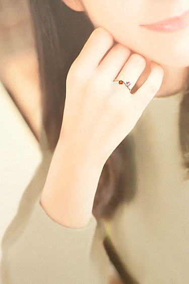 コメント ハートシェイプのサファイアをウエーブアームに沿ってころんとセットした、ユニークでラブリーなリングです。華奢なデザインですが、サファイアのキュートな色合いが目をひきつけます。