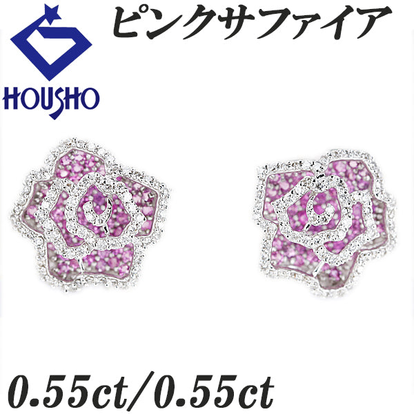 商品名 ピンクサファイア ピアス ダイヤモンド K18ホワイトゴールド バラ 薔薇 ローズ 花 フラワー 植物 ボタニカル