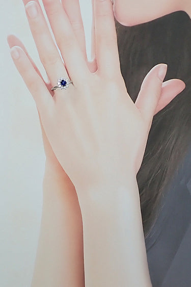 コメント ミキモトの、色鮮やかなブルーサファイアと取り巻きの煌めくダイヤモンドの組み合わせがエレガントなリングです。やや細めのV字のアームがお手元をスッキリとした印象へ導きます。