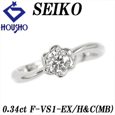 セイコー ダイヤモンド リング Pt1000 SEIKO グレード付き 鑑定書 一粒石 花 フラワー 植物 ボタニカル ウェーブ【中古】【904133】