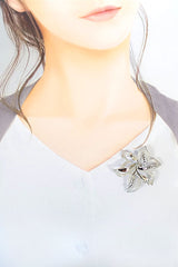 This brooch by Shunichi Tamura features a cool double-layered flower on a line of black diamonds.