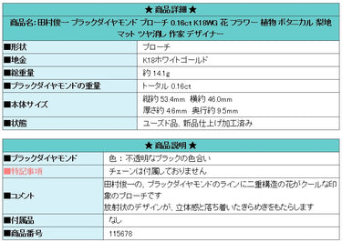 Product name: Shunichi Tamura Black Diamond Brooch 0.16ct K18WG Flower Plant Botanical Matte Finish Artist Designer