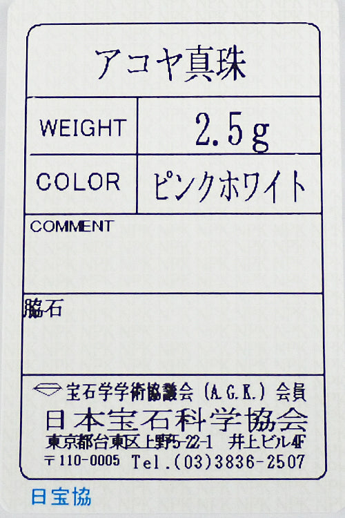 アコヤ真珠 色:ピンクを帯びたクリームホワイトの色合い