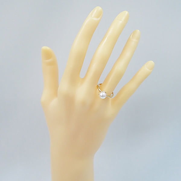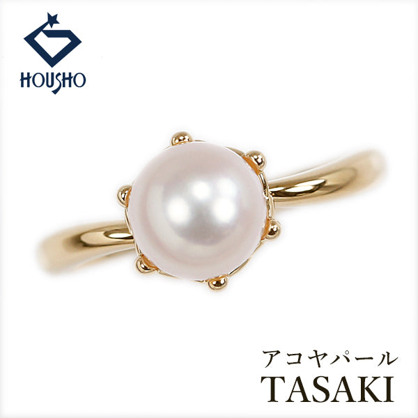 タサキ 田崎真珠 アコヤ真珠 リング K18イエローゴールド TASAKI 一粒パール ミル ドット ウェーブ【中古】【904666】