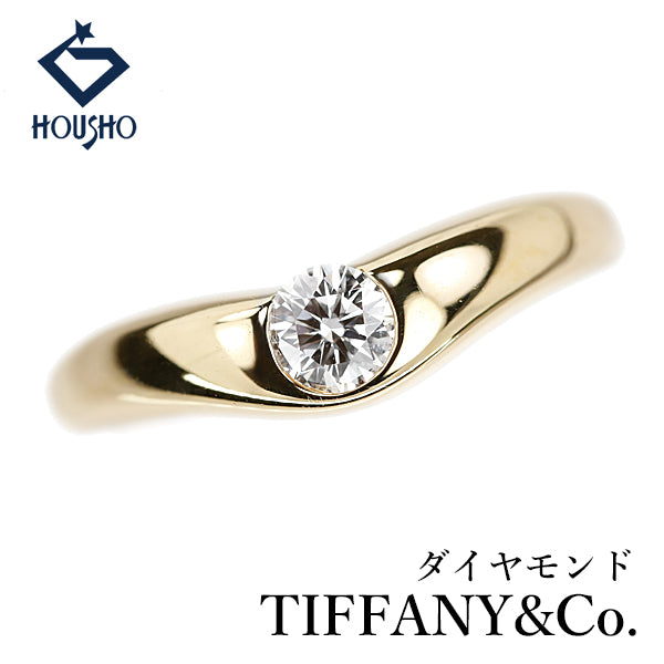 ティファニー ダイヤモンド カーブドバンド リング K18イエローゴールド TIFFANY&Co. エルサ・ペレッティ 一粒石 V字【中古】【905093】