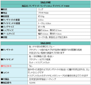 Product name: Tanzanite ring 2.07ct diamond Pt900