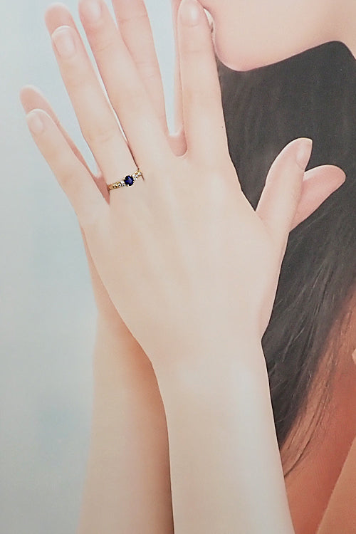コメント タサキの、ブルーサファイアにイエローゴールドの組み合わせがエレガントな印象のリングです。クラシカルでありながらスッキリとした細さで、デイリーユースにも取り入れやすいお品です。