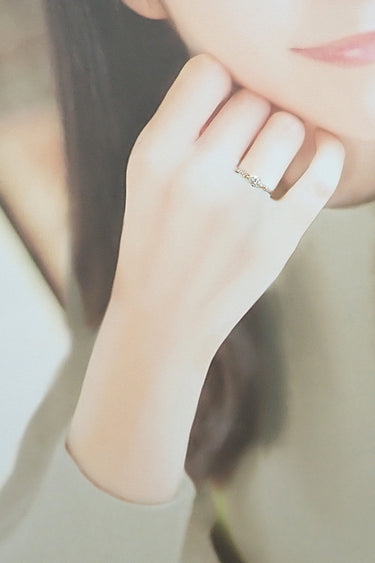 コメント 見栄えの良いサイズのマーキスカットダイヤモンドが眩い輝きを放つ、シャープで洗練されたデザインのリングです。控えめな細めのアームがダイヤモンドの存在感を引き立て、きらめきを際立たせてくれます。