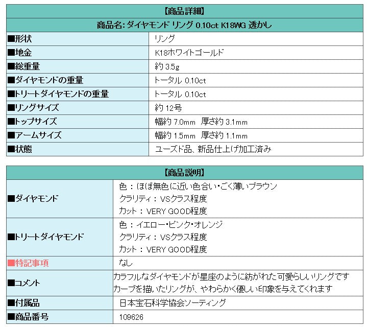 Product name: Diamond ring 0.10ct K18WG openwork