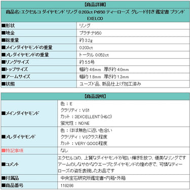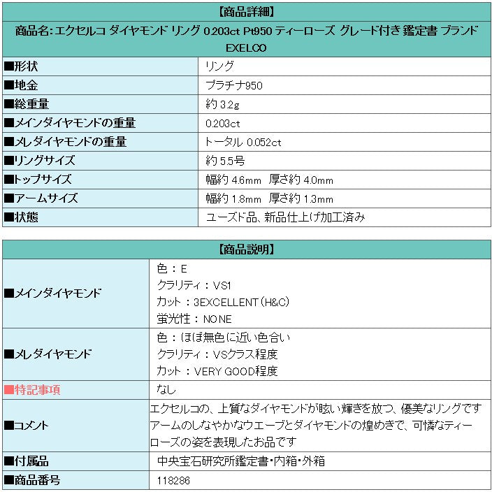 Product name: Excelco Diamond Ring 0.203ct Pt950 Tea Rose Graded Certificate Brand EXELCO