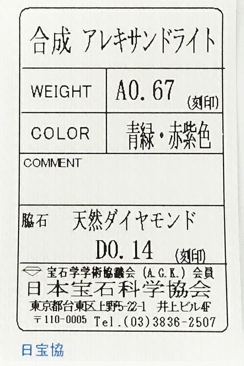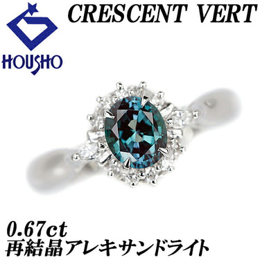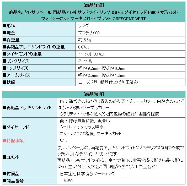 Product name: CRESCENT VERT Recrystallized Alexandrite Ring 0.67ct Diamond Pt900 Deformed Cut Fancy Cut Marquise Cut Brand CRESCENT VERT
