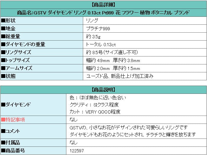 Product name: GSTV Diamond Ring 0.13ct Pt999 Flower Plant Botanical Brand