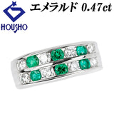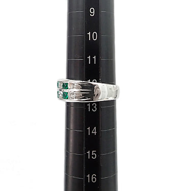エメラルド リング ダイヤモンド Pt900 二連風 重ね付け風 太め 幅広【中古】【903086】
