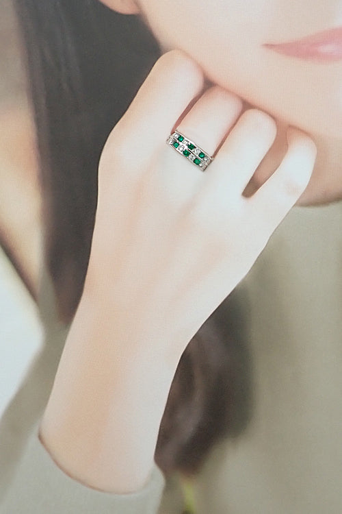 商品名 エメラルド リング ダイヤモンド Pt900 二連風 重ね付け風 太め 幅広