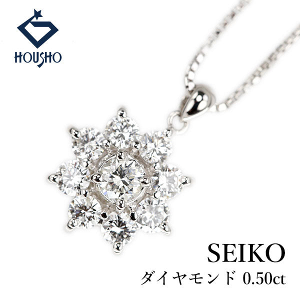 セイコー ダイヤモンド ネックレス Pt900 Pt850 SEIKO 花 フラワー 植物 ボタニカル【中古】【906119】