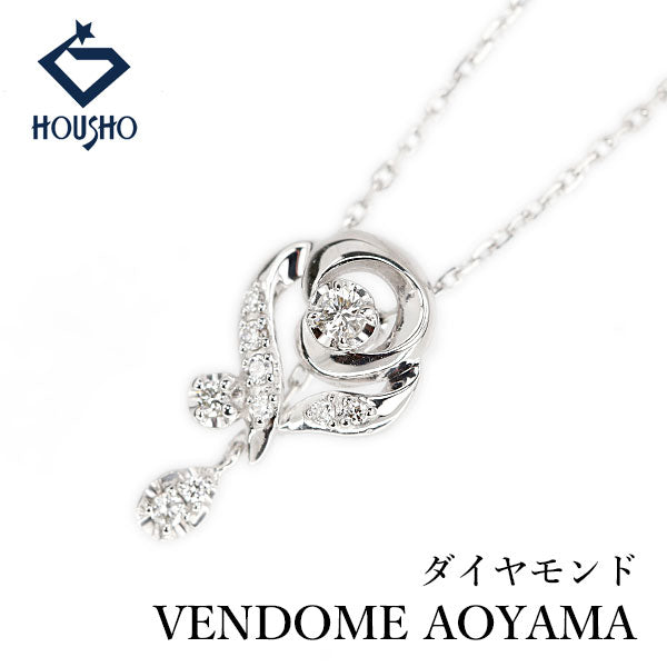 ヴァンドーム青山 ダイヤモンド クリスティーヌ ネックレス K18ホワイトゴールド VENDOME AOYAMA 花 フラワー 植物 ボタニカル Y字 揺れる 【中古】【906122】