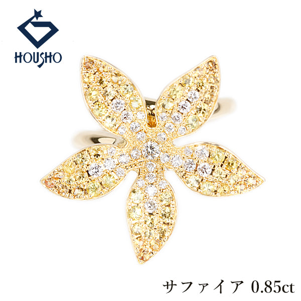 商品名 サファイア リング ダイヤモンド K18イエローゴールド 花 フラワー 植物 ボタニカル パヴェ
