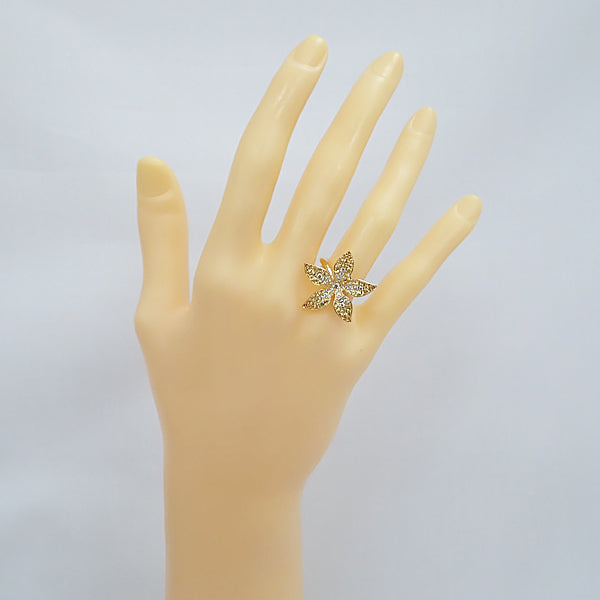 サファイア リング ダイヤモンド K18イエローゴールド 花 フラワー 植物 ボタニカル パヴェ【中古】【906499】