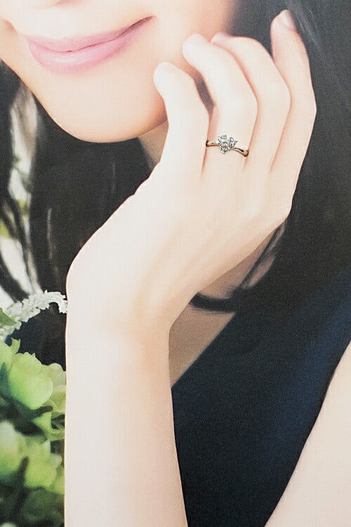 タサキの、3ピースのダイヤモンドが眩い輝きを放つ、シンプルなデザインのリングです
