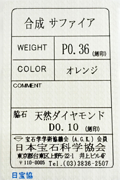 商品名:クレサンベール 再結晶サファイア リング 0.36ct ダイヤモンド K18YG ブランド 京セラ CRESCENT VERT