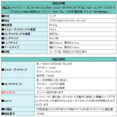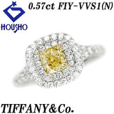 商品名:ティファニー ソレスト クッションカット イエローダイヤモンド ダブル ハロー エンゲージメント リング 0.57ct Pt950 変形カットファンシーカット グレード付き 鑑定書 ブランド TIFFANY&Co.